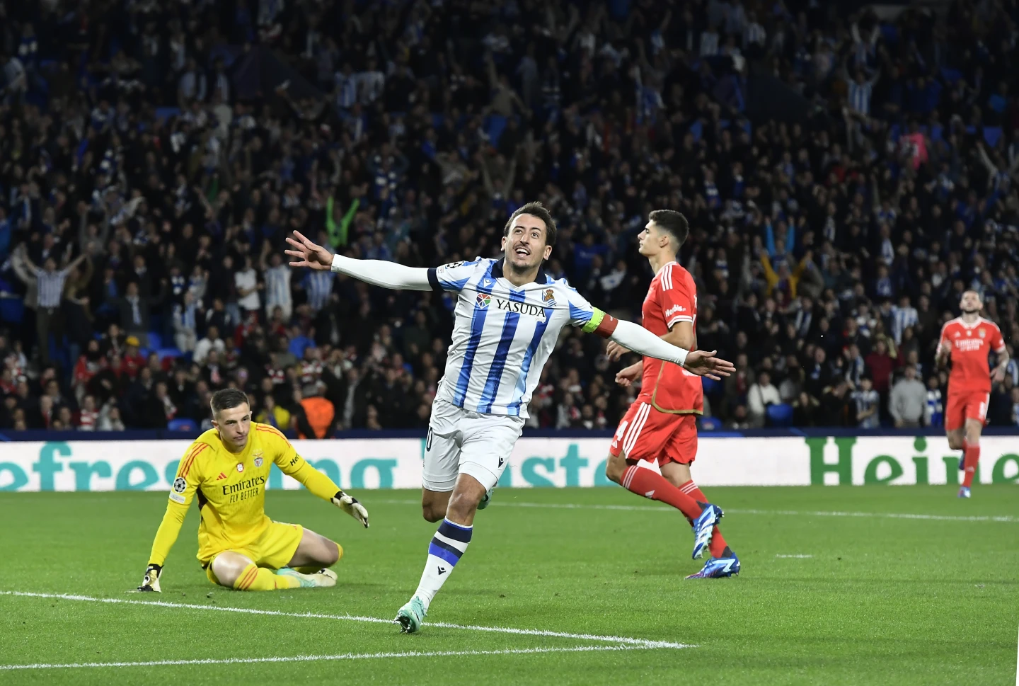 Real Sociedad threatened to sweep aside Benfica in the first half of a 3-1 win that saw its three goals all scored by the 21st and a penalty missed minutes later.