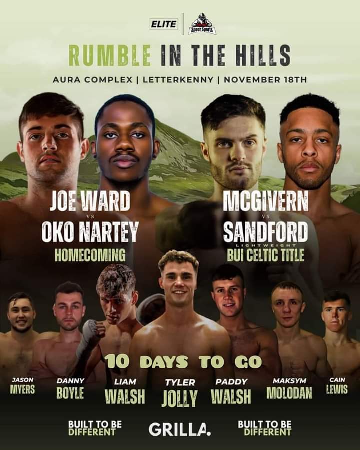 Presented by Jason Quigley’s Elite Sheer Promotions, Ward versus Nartey co-headlines the ‘Rumble In The Hills’ fight night along with the vacant Boxing Union of Ireland lightweight title fight between James Mcgiven (7-0, 2 KOs) and Josh Sandford (6-0, 0 KO).