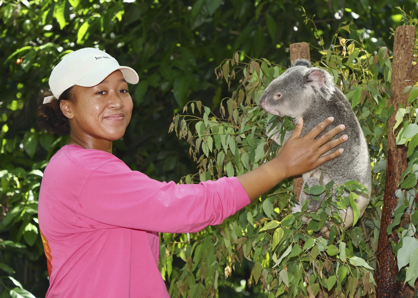 The U.S.-based Japanese player and her American rapper boyfriend Cordae became parents to daughter Shai in Los Angeles in July. On Friday she made a fan appearance at a Brisbane koala park.