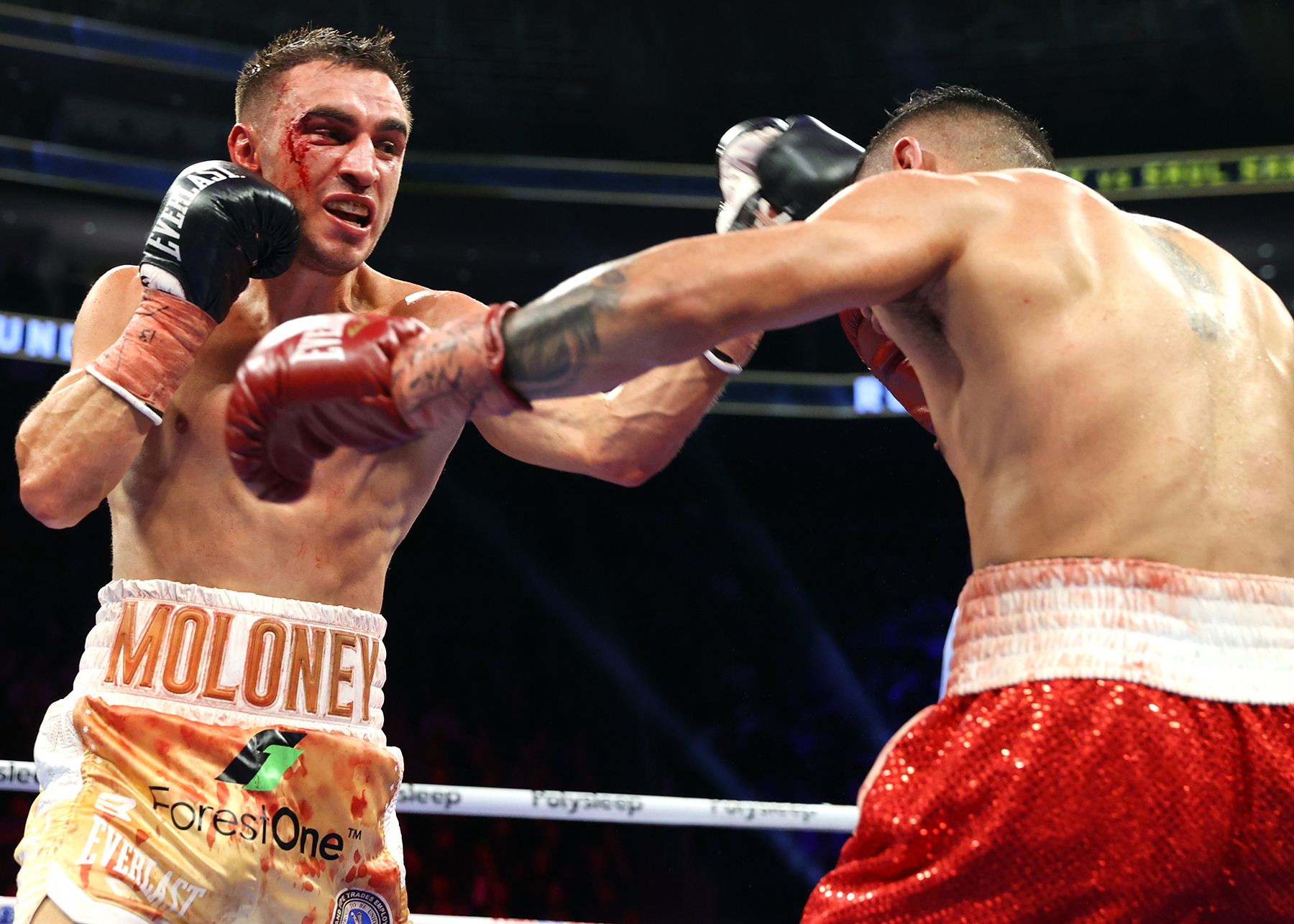 Sanchez was aggressive from the start, but by round three, Moloney began to stand his ground and land on the inside. A headbutt caused a cut above Moloney’s right eye, but he was unfazed going into rounds four and five, where he worked the body and corralled Sanchez against the ropes.