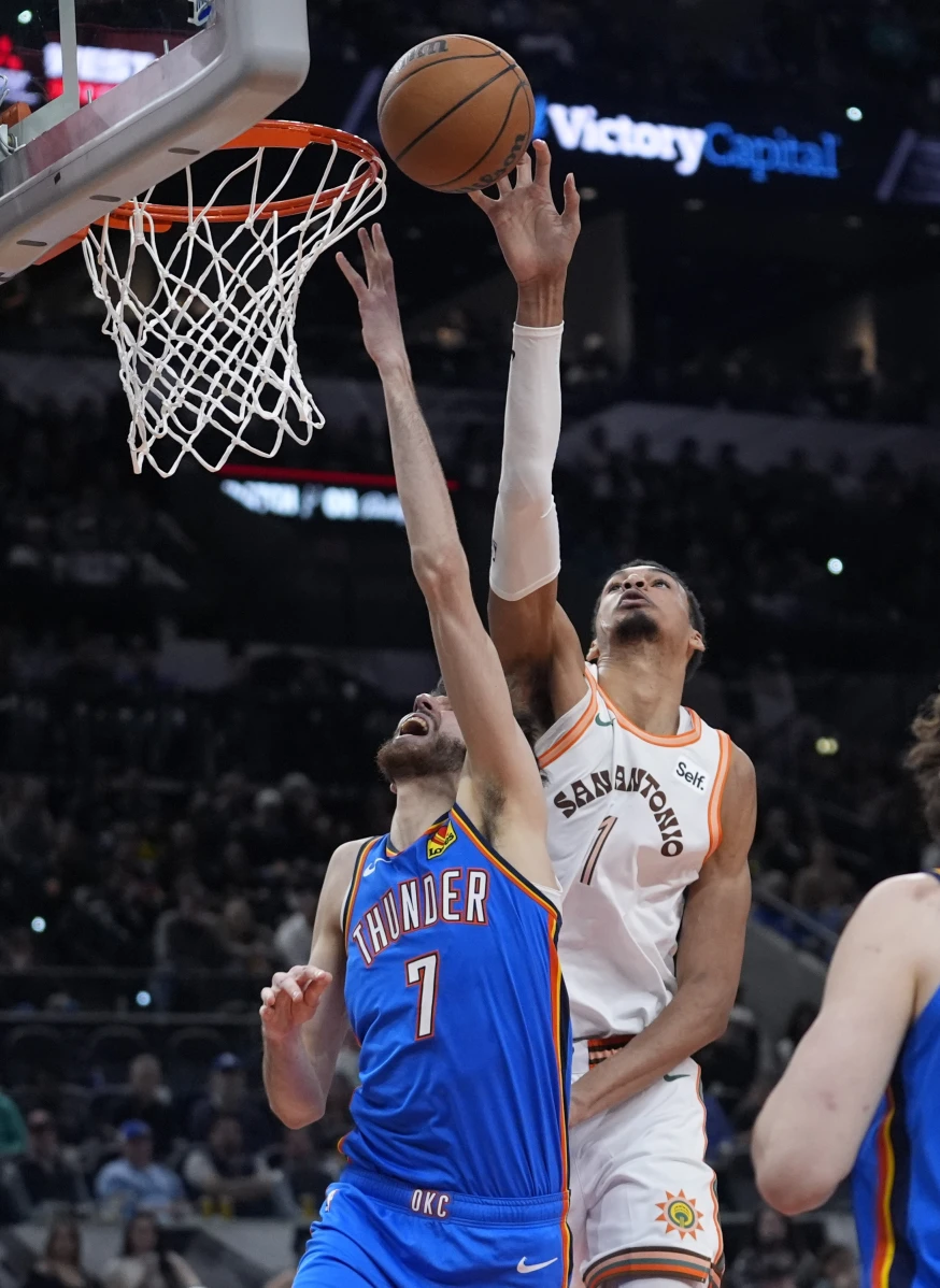 Holmgren’s 3-pointer gave Oklahoma City its biggest lead at the time at 103-76 a minute into the fourth quarter. Wembanyama responded on the following possession by bullying through Holmgren for a two-handed dunk and a staredown. Holmgren was assessed an offensive foul for pushing Wembanyama on the next possession.