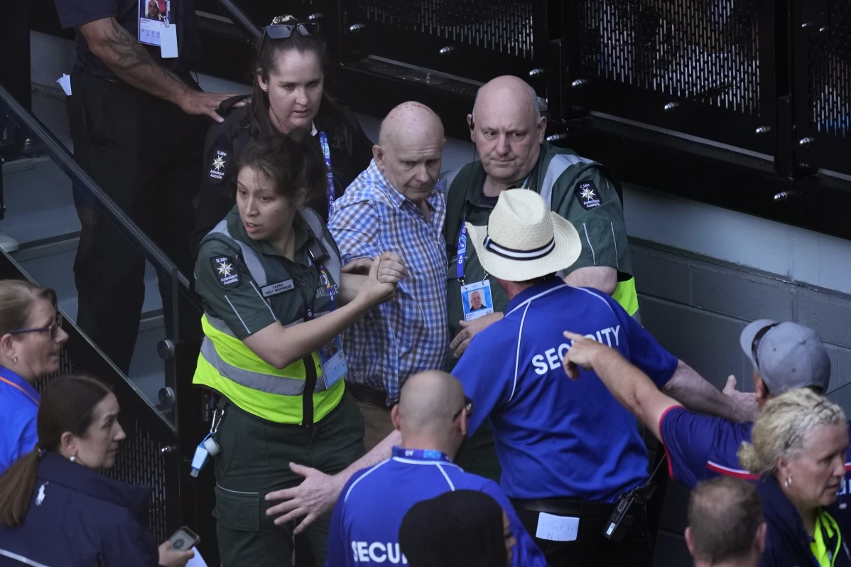 Djokovic was serving at 5-5 and at deuce when play was interrupted while a spectator received medical help in the stands. After ambulance officers helped the man walk out, Djokovic held serve and saved a match point at 5-6 in the tiebreaker.
