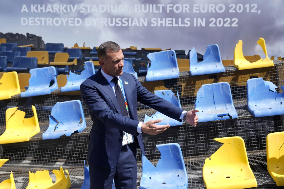 The Ukraninian soccer federation unveiled an installation in Munich of a stadium stand destroyed in the war back home to highlight the ongoing conflict ahead of the team’s first match at the European Championship on Monday.