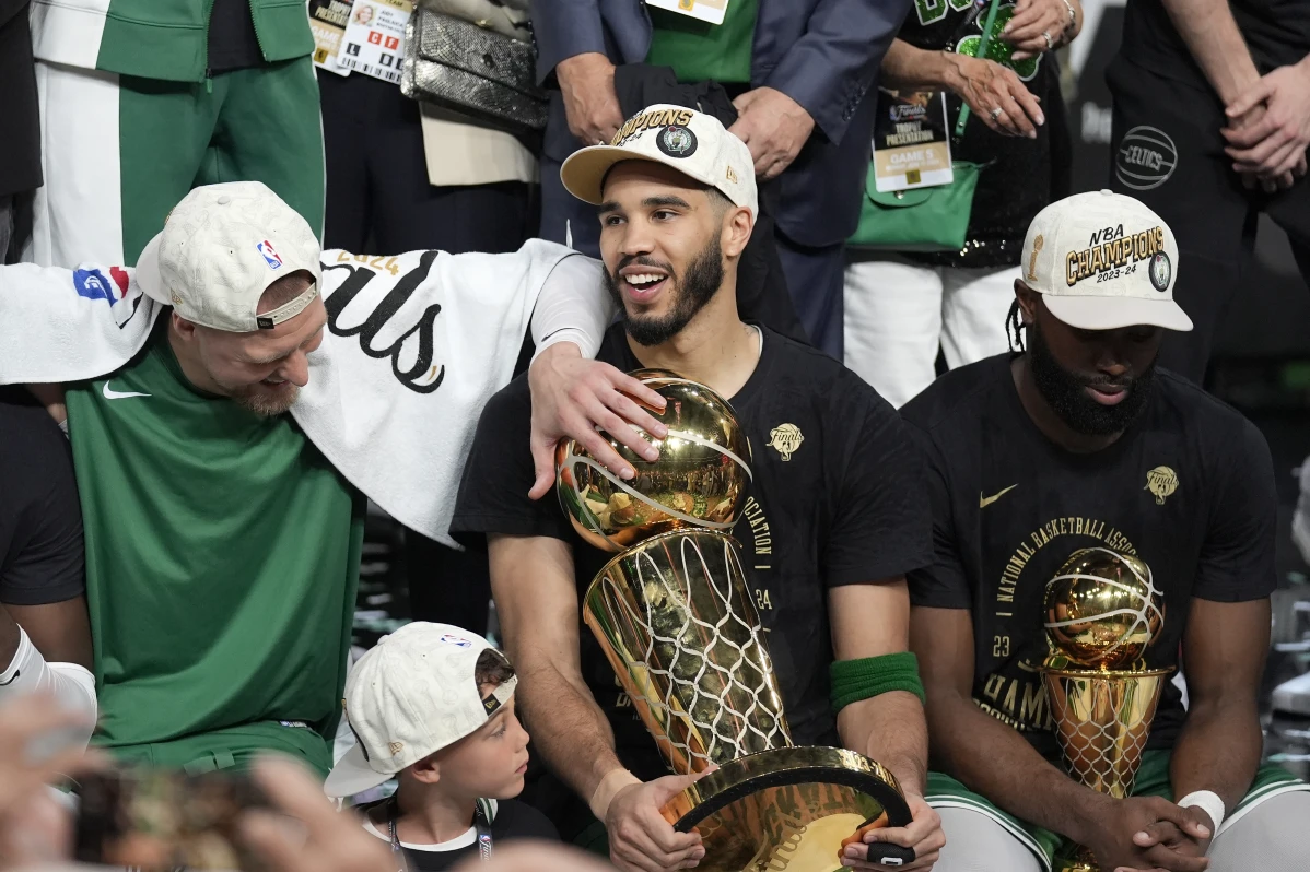 “It means the world,” Tatum said on stage after the team received the trophy from NBA Commissioner Adam Silver. “It’s been a long time. And damn I’m grateful.”