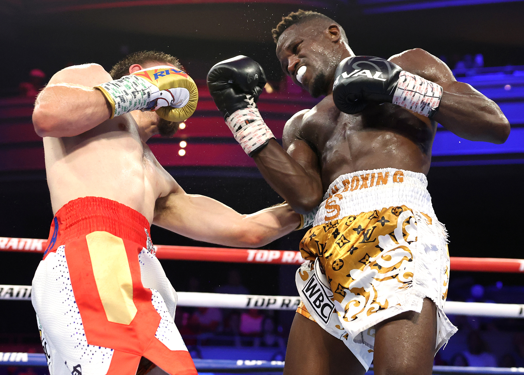 By the fourth, Martinez was on the verge of being stopped but survived until the sixth, where several unanswered shots forced referee Thomas Taylor to halt the action.