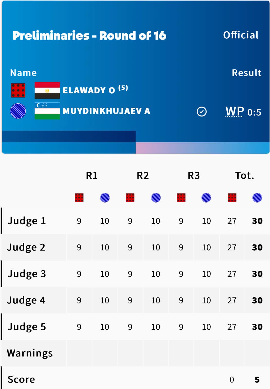 Earlier, Egypt’s Omar Elawady did shadow boxing for the better part of the fight against Uzbekistan’s world champion Asadkhuja Muydibkhujaev who deservedly won their round of 16 light-middleweight bout by a unanimous decision.