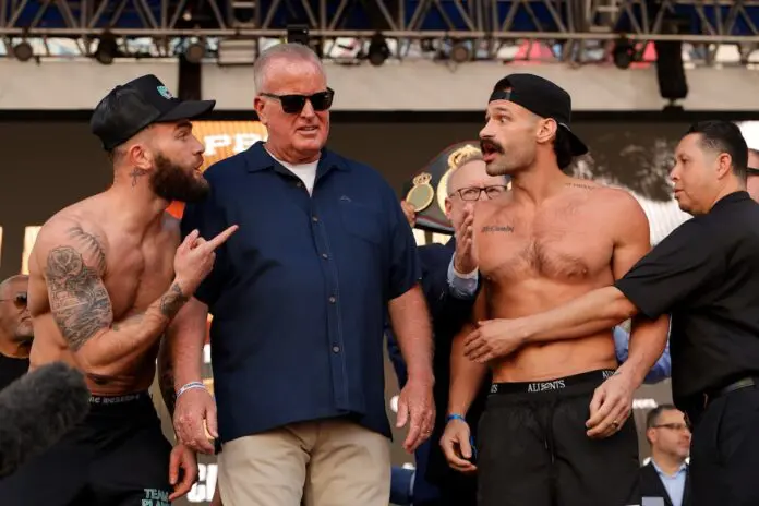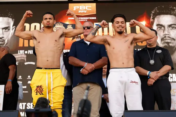 Las Vegas’ former WBA super lightweight champion Rolando Romero (15-2, 13 KOs) and Stockton-based Manuel Jaimes (16-1-1, 11 KOs) of San Jose, California showed 140.8 lbs and 139.8 lbs, respectively. The 10-round contest kicks off the action live on PPV.