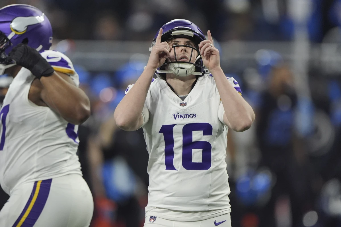 The Vikings went for it on fourth down from the Lions 3 in the second quarter and Darnold, under pressure, overthrew an open Justin Jefferson in the end zone.