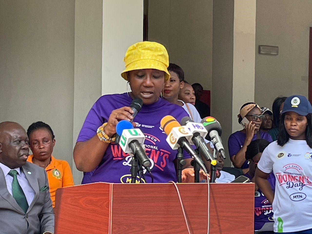 Hon. Agnes Naa Momo Lartey, Minister for Gender, Children and Social ProtectionAngela Mensah Poku, Chief Enterprise Business Officer, MTN Ghana Georgina Fiagbenu, Senior Manager for Corporate Communication, MTN Ghana, delivering an address after the walkNsroma Delanyo Amoateng, Manager of Products and Services, MTN Ghana giving a presentation on mCareMTN staff after the walk at the Ministry for Gender, Children and Social Protection