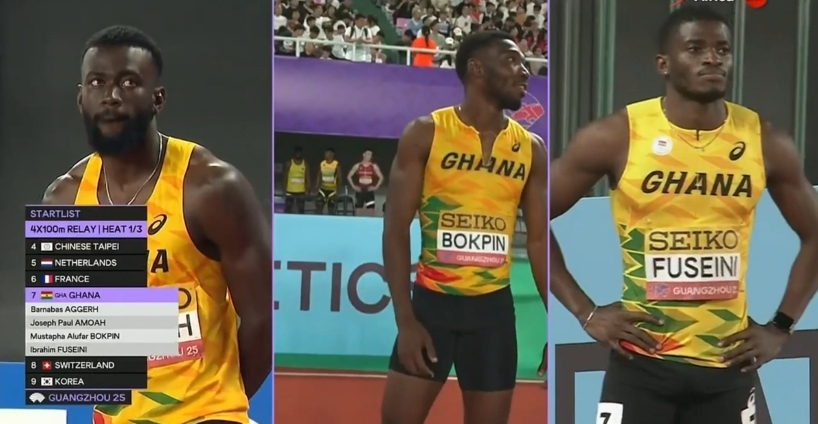 The quartet—Barnabas Aggerh, Joseph Paul Amoah, Mustapha Alufar Bokpin, and Ibrahim Fuseini—finished second in their qualifying heat behind France at the Guangzhou Relays Day 2.