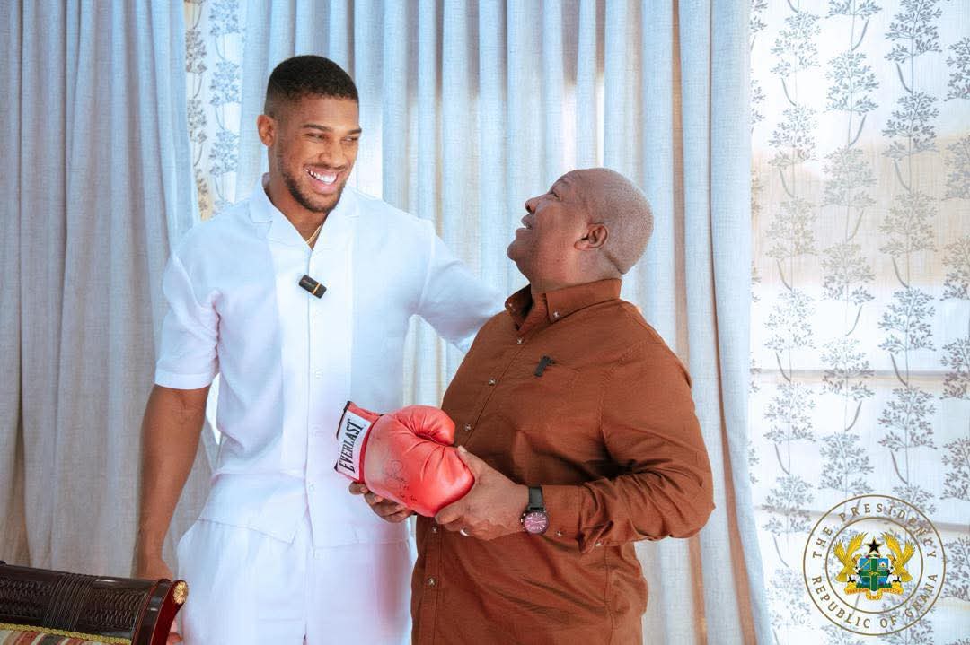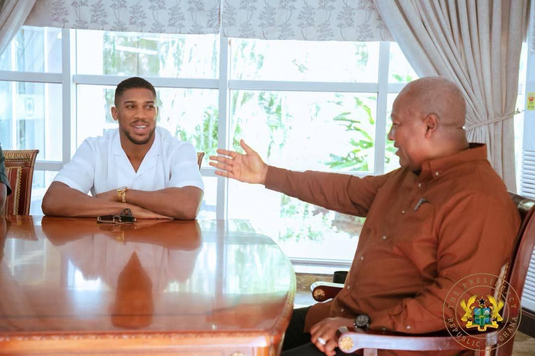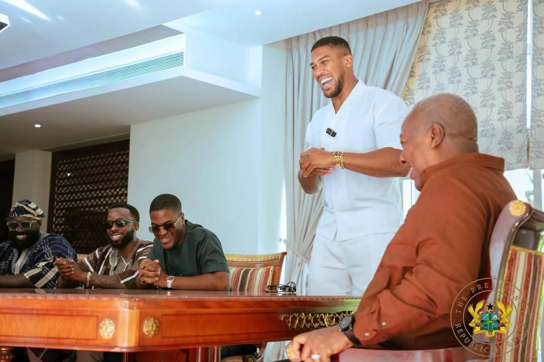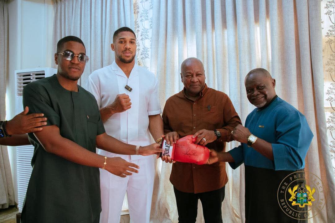 World-renowned British-Nigerian boxer Anthony Joshua and the Legacy Rise Sports team on Monday paid a courtesy call on President John Dramani Mahama at the Jubilee House to discuss the revival of boxing in Ghana and Africa.