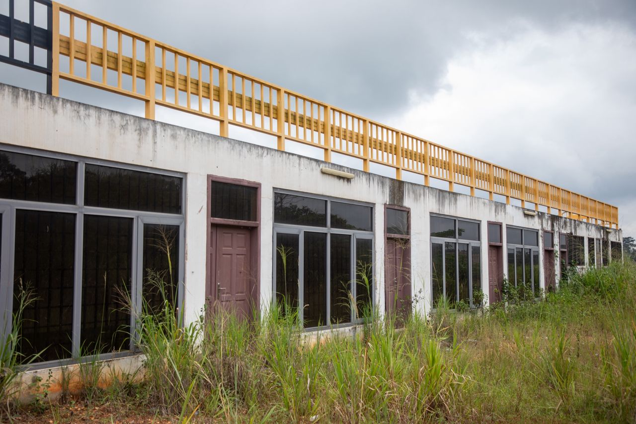 The main contractor vacated the project in November 2024 without hand-over, leaving terraces engulfed by weeds, an untended pitch and unfinished internal spaces. Encroachment continues because boundary documentation reportedly still held by a former NYA administrator has not been recovered.