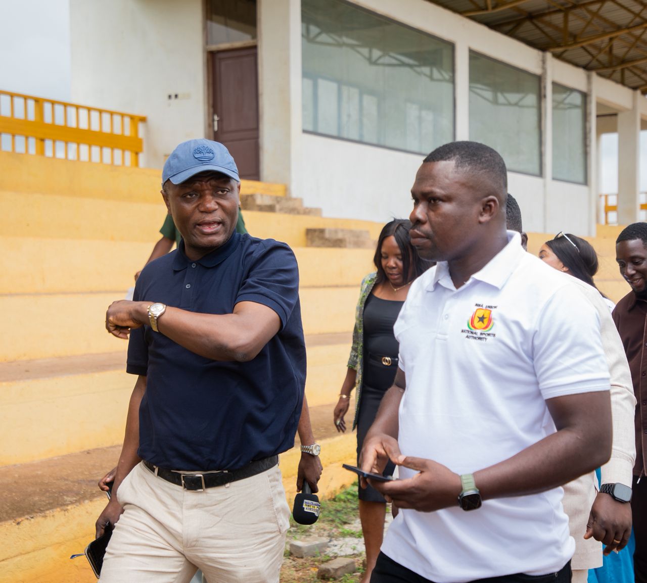 The Nyinahin inspection follows the Minister’s earlier visit to Baba Yara Sports Stadium in Kumasi and is part of a national drive to audit stalled sports facilities and return them to productive use.