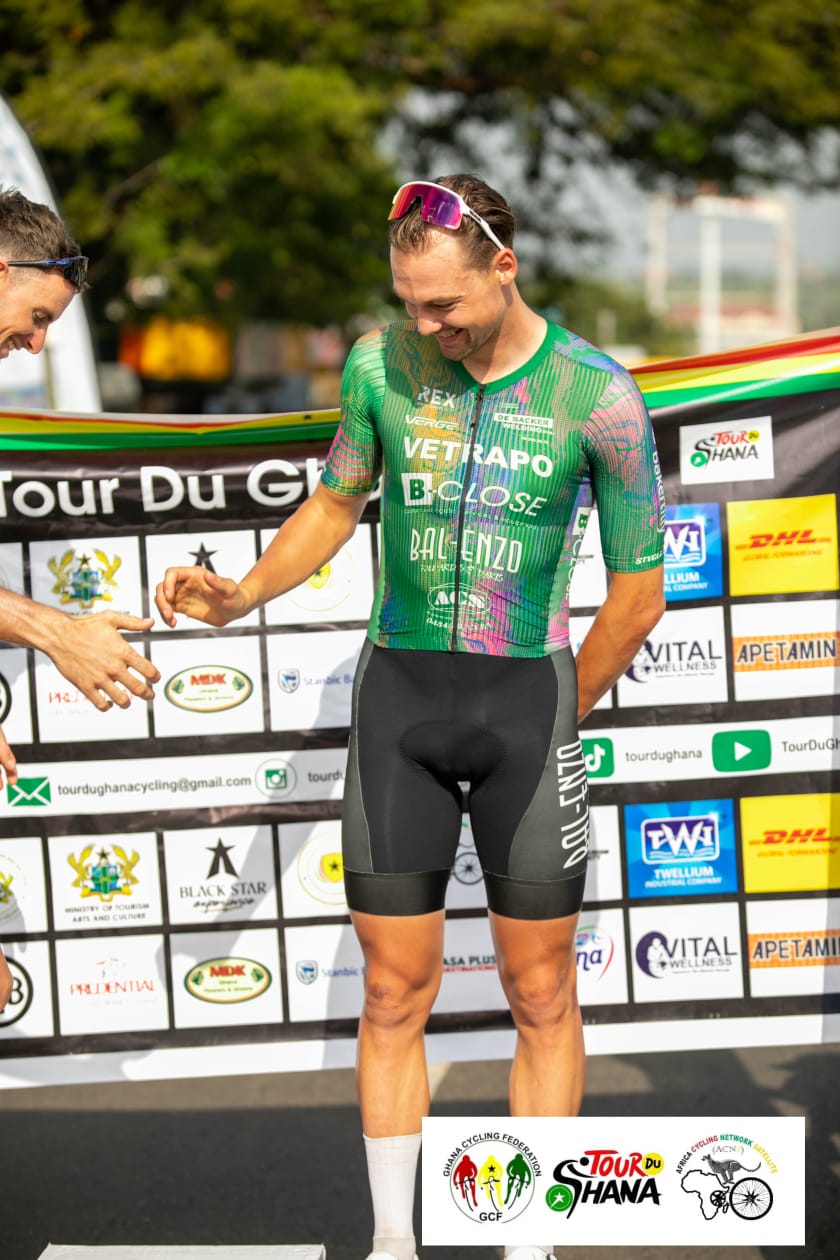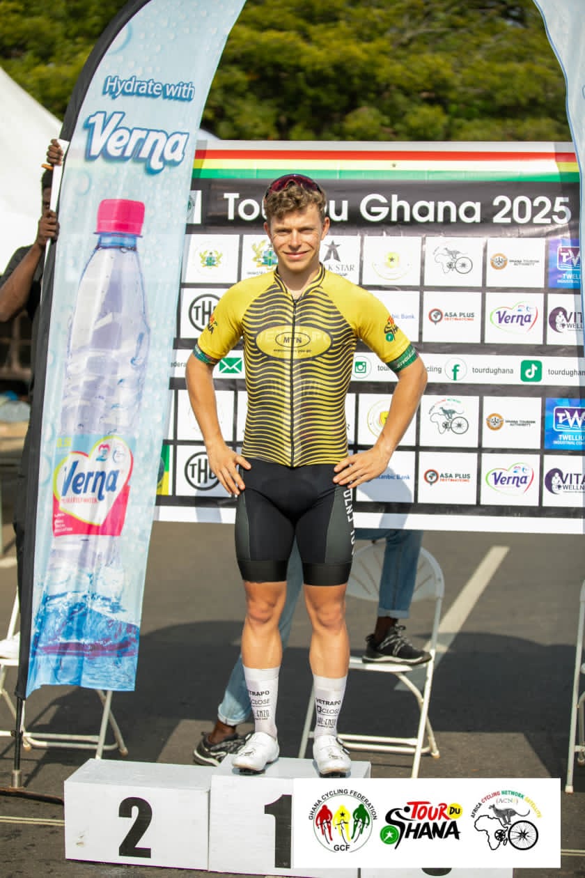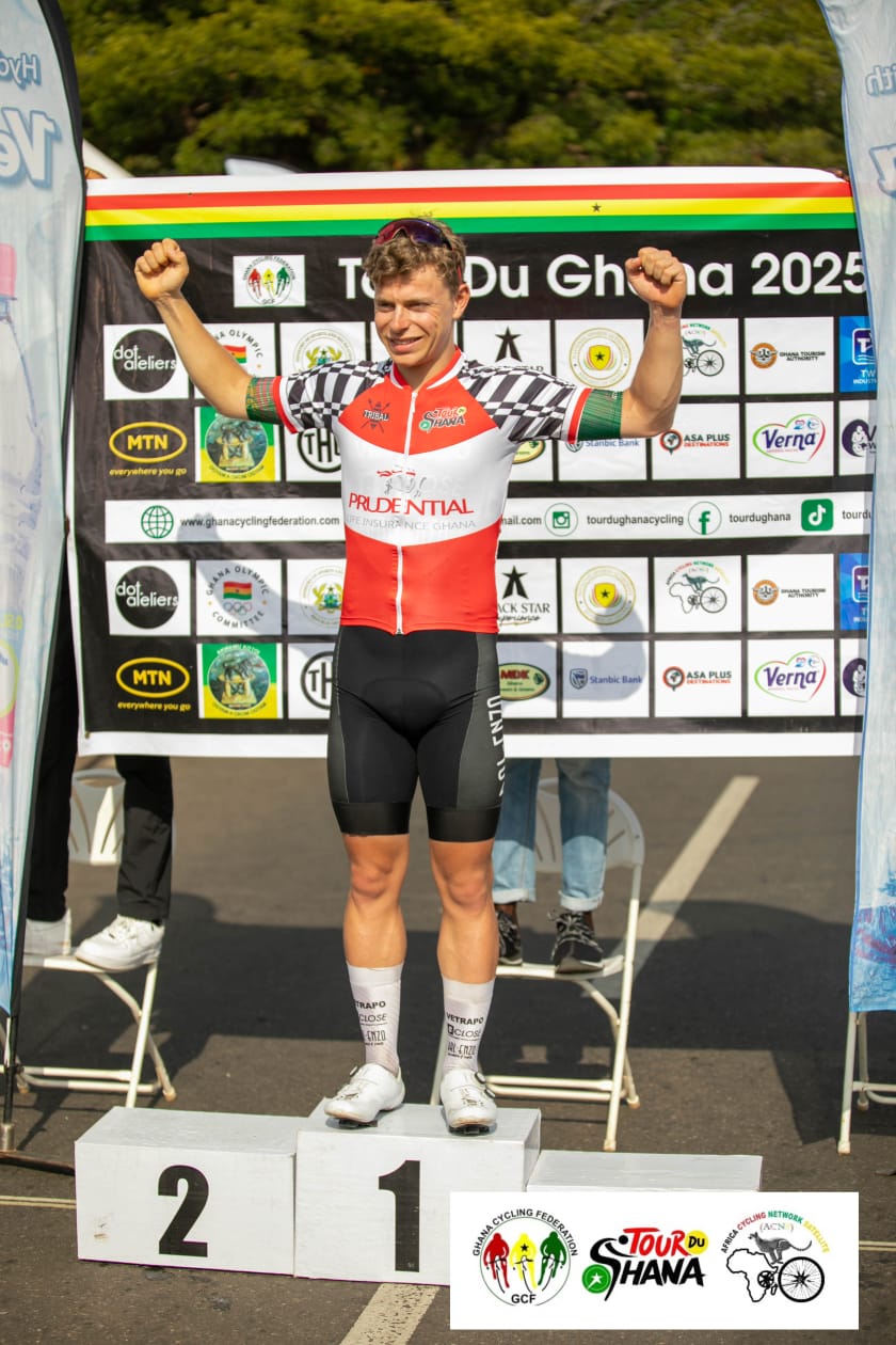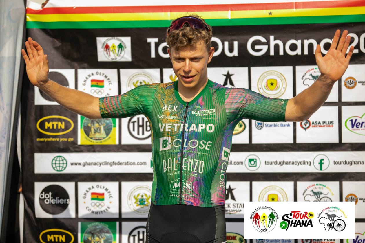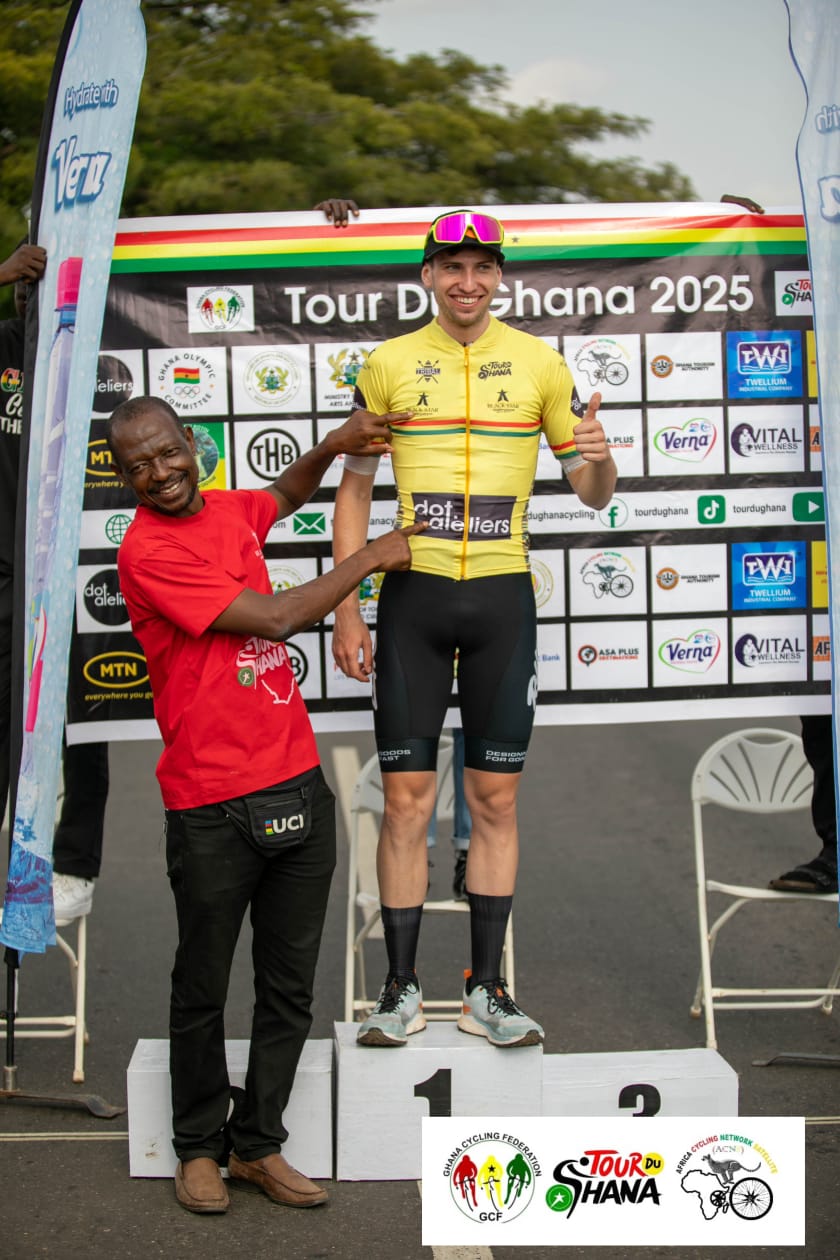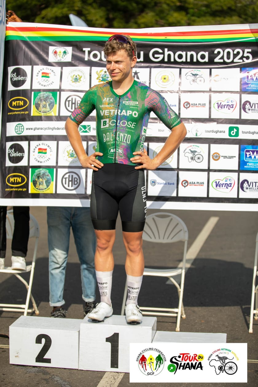 Tomas De Neve of Team Belgium finished top of the podium, claiming an impressive victory in stage 3 of the 2025 Tour du Ghana, after beating the 60-man competition in a blistering time of 1:54:07.276 Wednesday in Ho, Volta Region of Ghana.