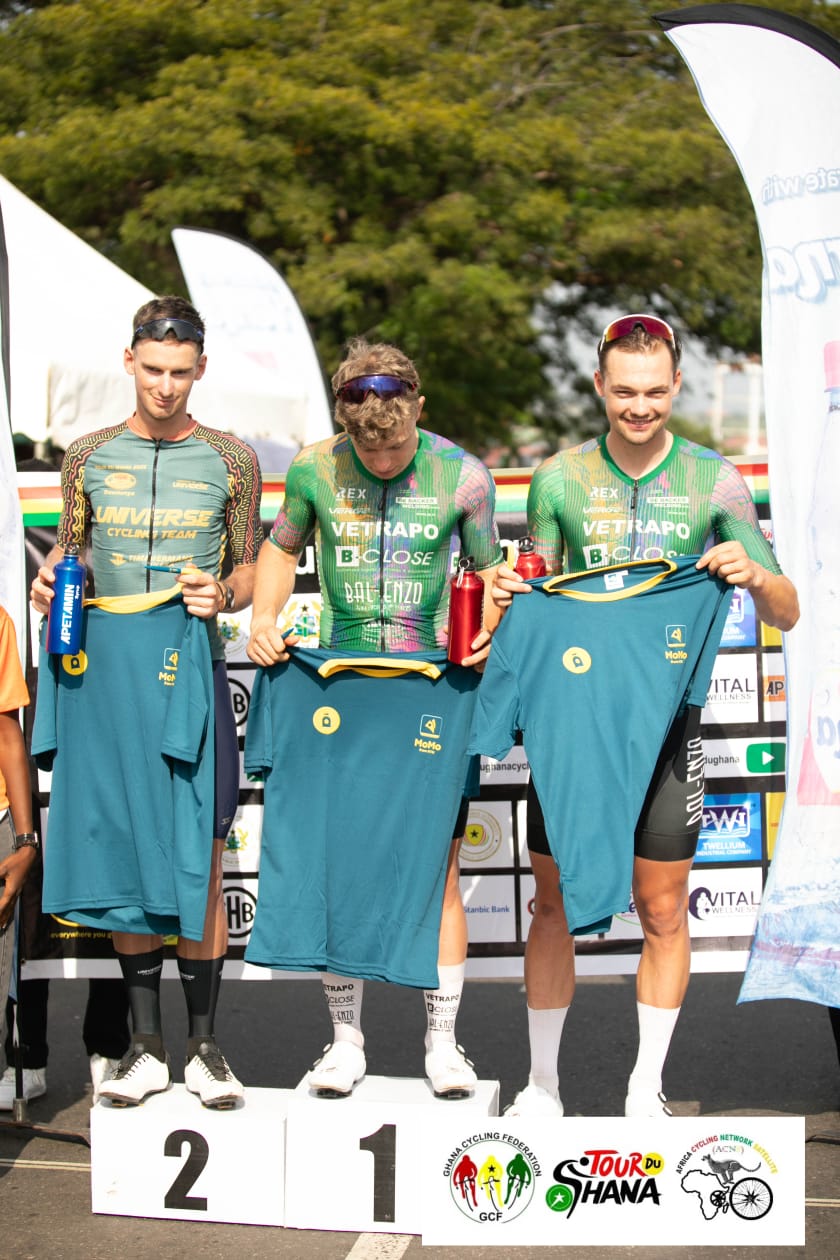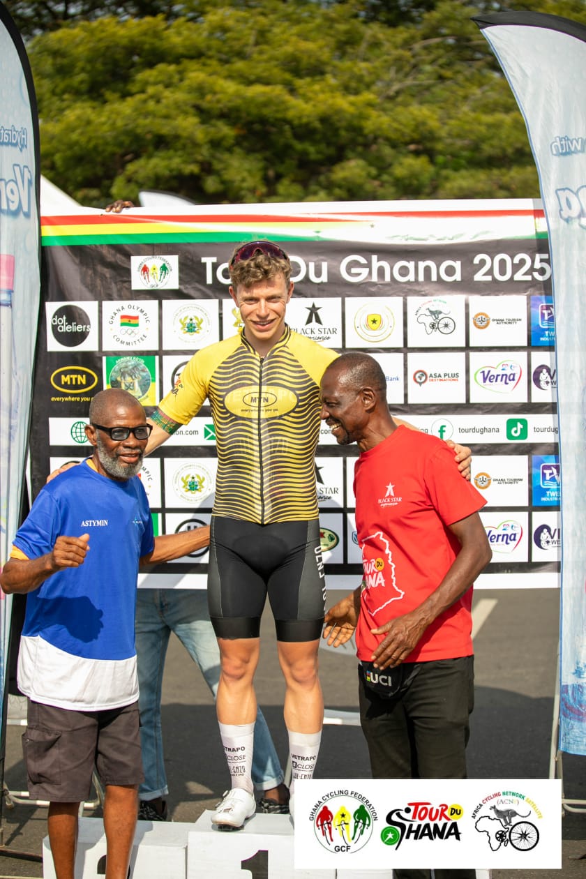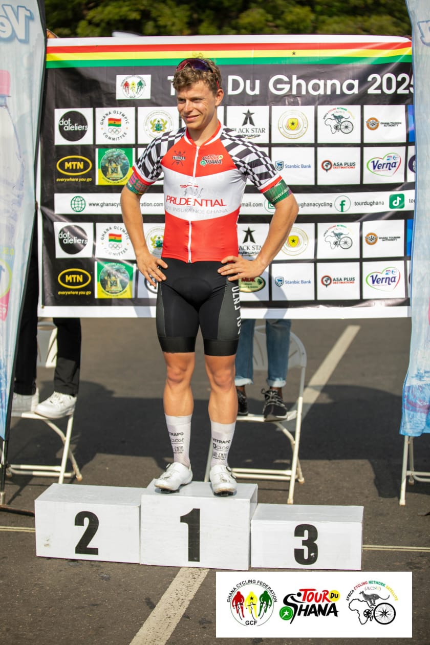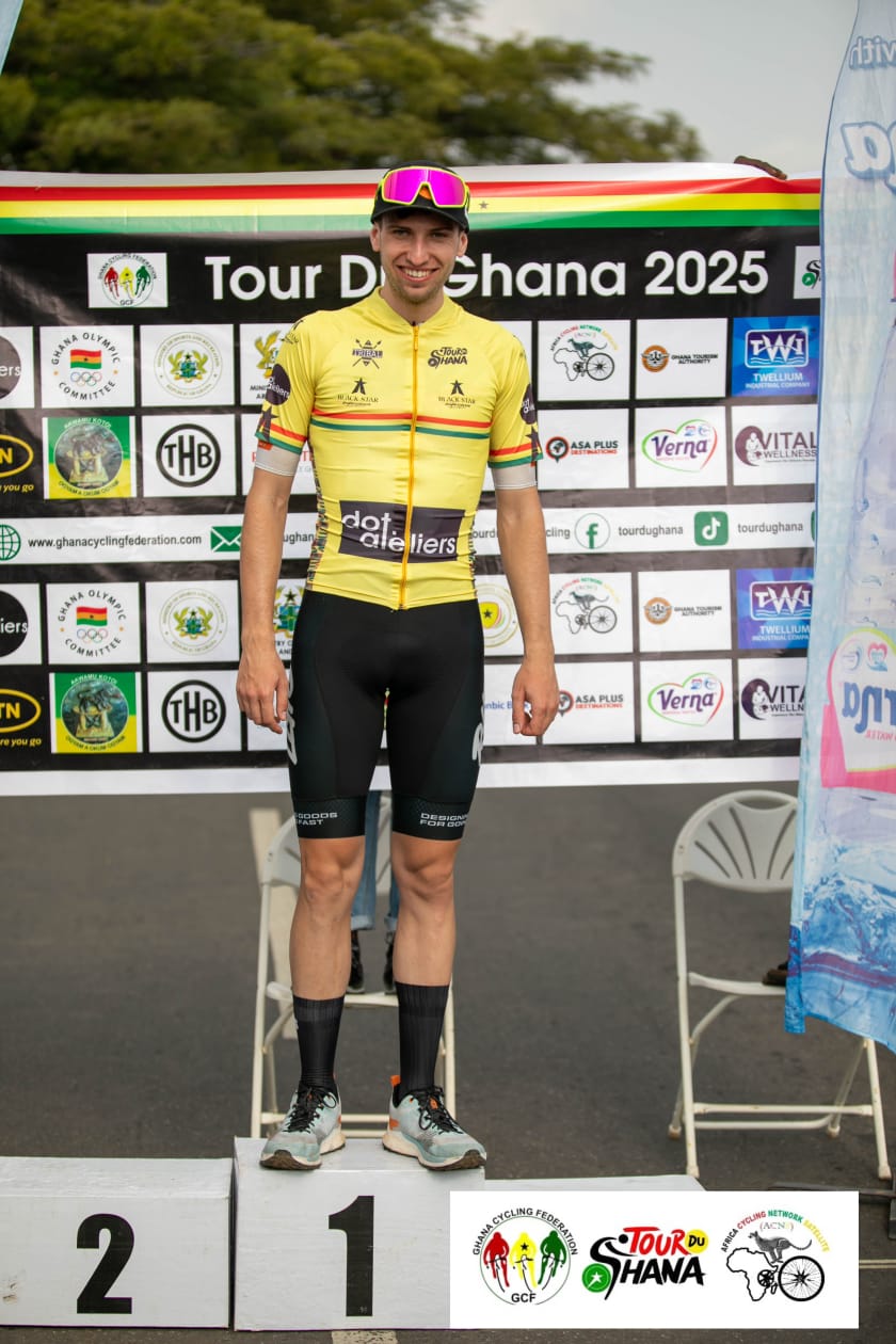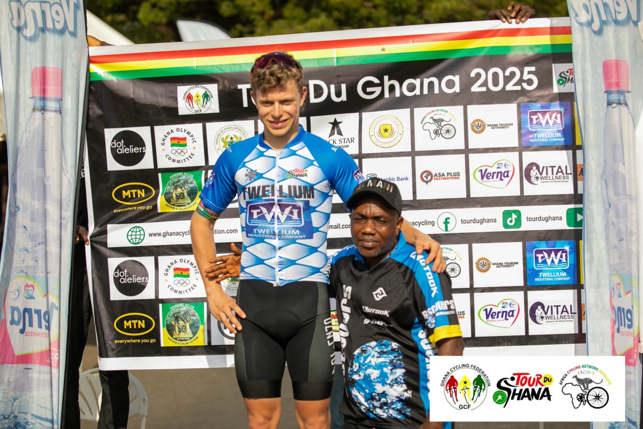 Tomas De Neve of Team Belgium finished top of the podium, claiming an impressive victory in stage 3 of the 2025 Tour du Ghana, after beating the 60-man competition in a blistering time of 1:54:07.276 Wednesday in Ho, Volta Region of Ghana.