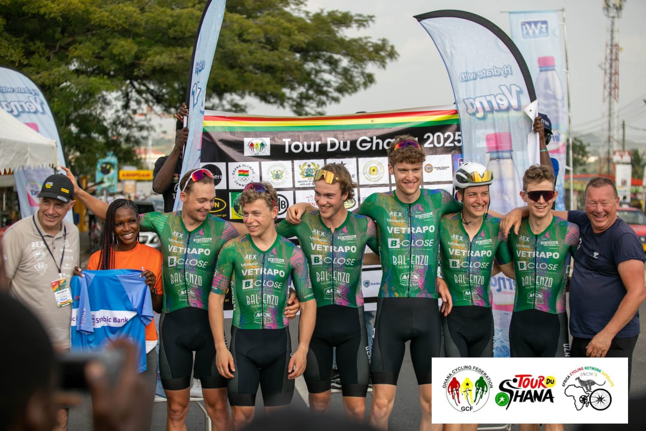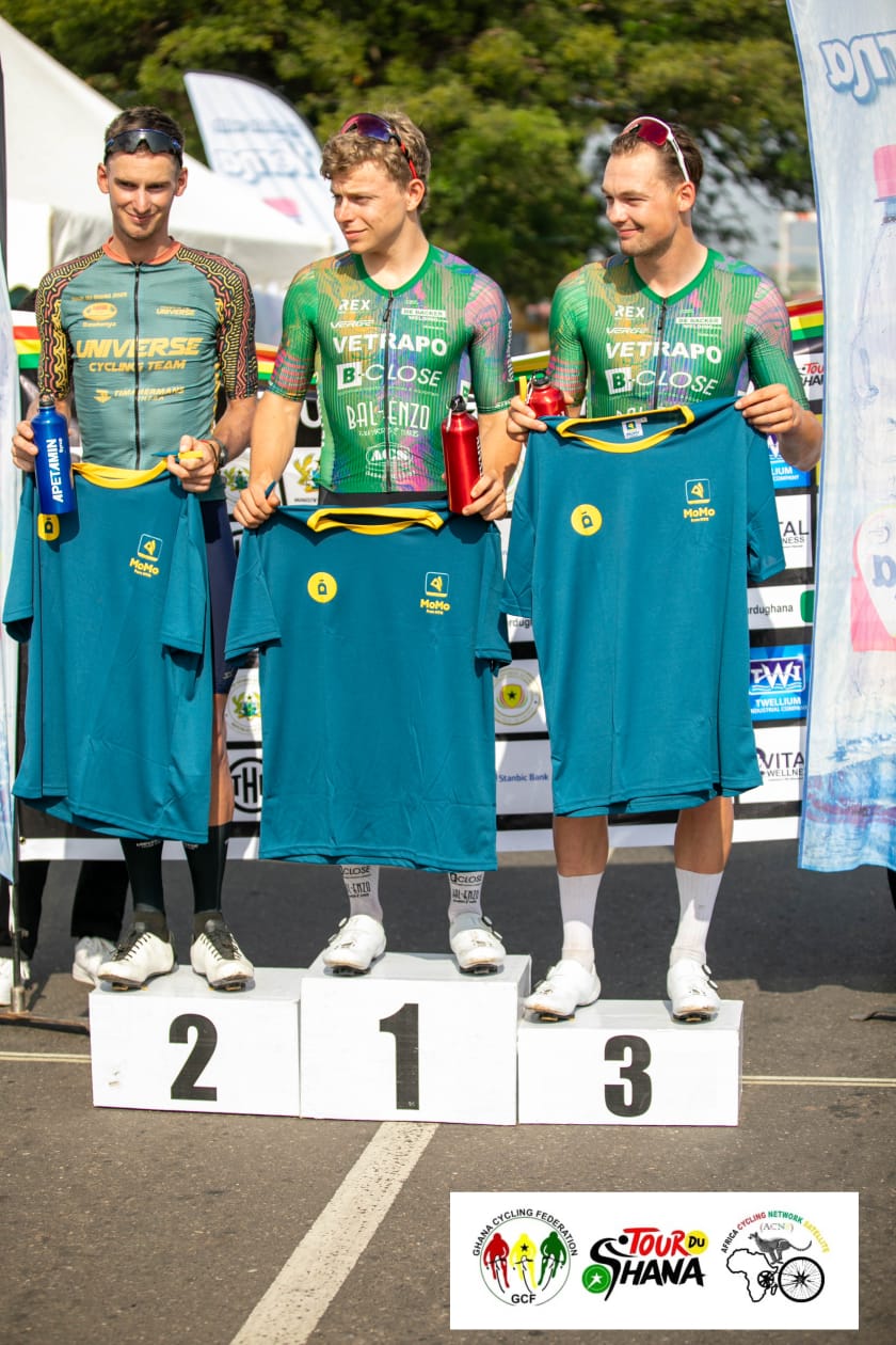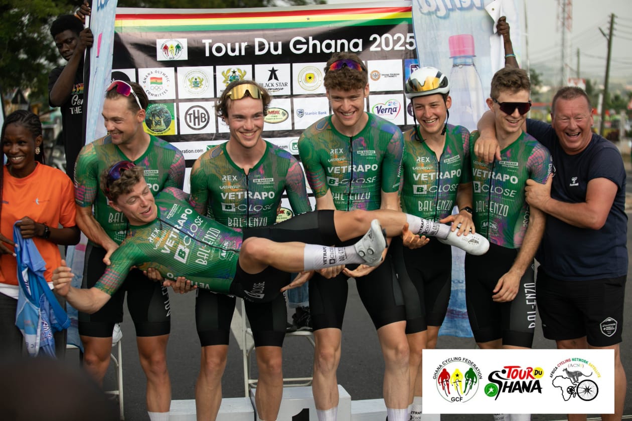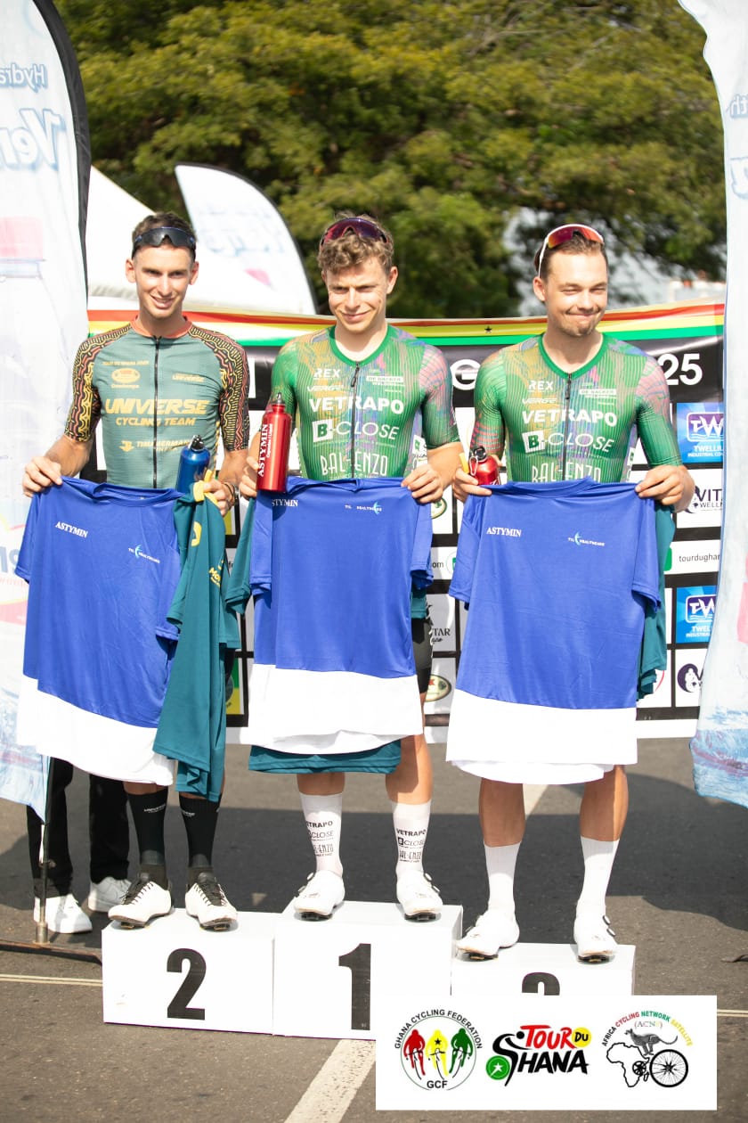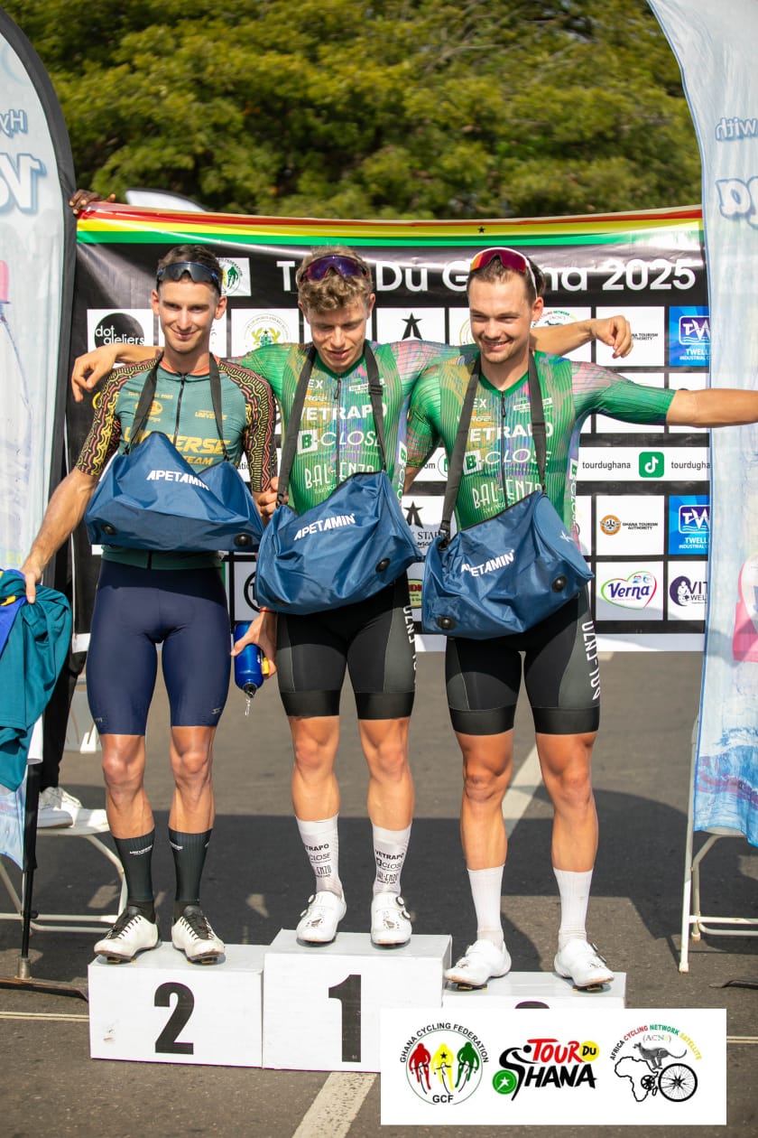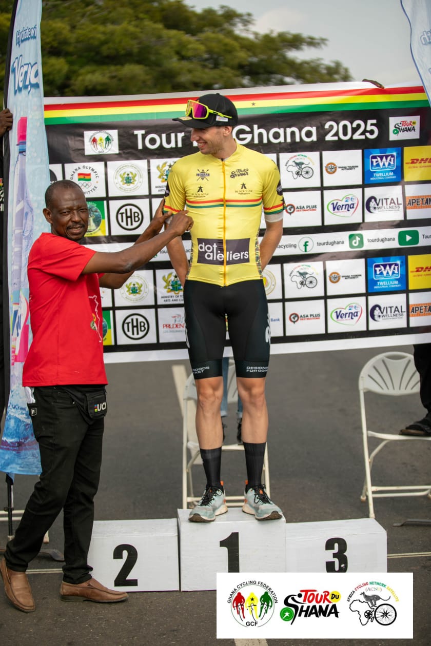 Tomas De Neve of Team Belgium finished top of the podium, claiming an impressive victory in stage 3 of the 2025 Tour du Ghana, after beating the 60-man competition in a blistering time of 1:54:07.276 Wednesday in Ho, Volta Region of Ghana.